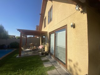 Cómoda casa en condominio, ideal para familias que buscan luz natural, seguridad y vida al aire libre. Construida en 2015, ofrece 105 m² construidos sobre un terreno de 251 m² En el primer piso te recibe un hall de entrada acogedor , amplio living y comedor separados para disfrutar y compartir . La cocina incorpora comedor de diario, perfecta para el día a día , además de baño de visita . Dormitorio principal con baño en suite y walking closet . En el segundo piso encontrarás 3 dormitorios, un baño completo y un pequeño estar ideal para home office o zona de juegos Disfruta la vida exterior con terraza y piscina de orientación poniente, perfectas para tardes soleadas . Estacionamiento para 2 vehículos . Condominio seguro , cercano a excelentes colegios y comercio como Jumbo y mall, para una vida práctica y conectada. Gastos comunes: $40.000 . - 4 dormitorios - 3 baños - 2 pisos - Orientación: Este de la casa; terraza/piscina hacia poniente